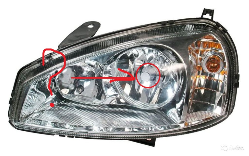 Она приворачивается на винт внутри фары: