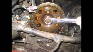 Её крепления откручиваются рожковым ключом, затем она аккуратно снимается. Появляется доступ к цепи ГРМ и верхней звёздочке распредвала. Шкив вала вращается специальным ключом до тех пор, пока метка на звёздочке распредвала не совместится с выступом на корпусе ГРМ. Метка на корпусе ГРМ совмещена с меткой на звёздочке распредвала
